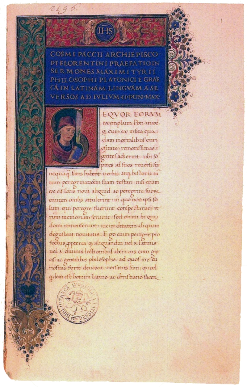 Fu autore di una traduzione in latino delle Dissertazioni di Massimo di Tiro, il cui testo greco era stato portato in Occidente da Costantinopoli da parte di Giovanni Lascaris. Alla sua morte fu sepolto in Santa Maria del Fiore.