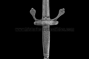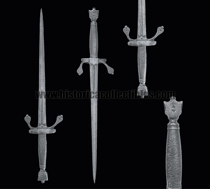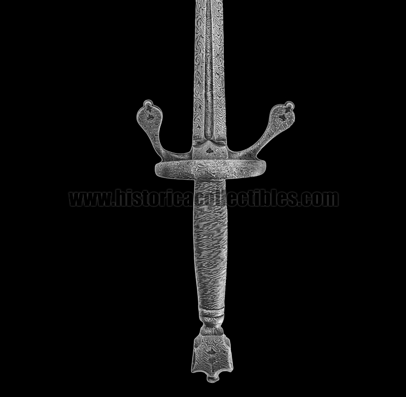 È opportuno anche considerare la presenza di un terzo "bollo" a forma di foglia posto appena al di sotto dei primi 2 e per il quale sussiste, rispetto agli altri, una distanza maggiore rispetto a quella che intercorre tra "Fleur de Lys" e la "Corona", ed inoltre sull'elsa è stato eseguito a se stante rispetto agli altri 2 i quali si trovano ai culmini della guardia. Ciò fa supporre pertanto che si tratti del punzone attribuibile al "Magister armorum", ovvero colui che la realizzò in qualità di "Magister armorum" o "maestro armaiolo" a servizio della Corte di Francia.