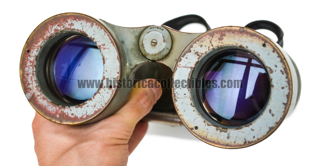 Questo modello in particolare ha impresso sulla parte dell’oculare sinistro la Reichsadler con la sigla "M" - "IV/1" ad indicare la produzione di binocoli Zeiss verificati ed accettati dalla Kriegsmarine, mentre sulla destra U.D.F. 7x50 ed il numero 1328, che indica probabilmente il numero di assegnazione ad un U-Boot. La visuale è ineguagliabile: estremamente nitida, luminosa e collimata.