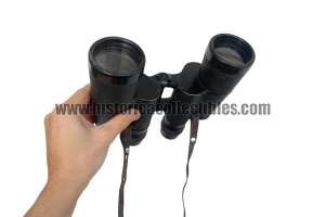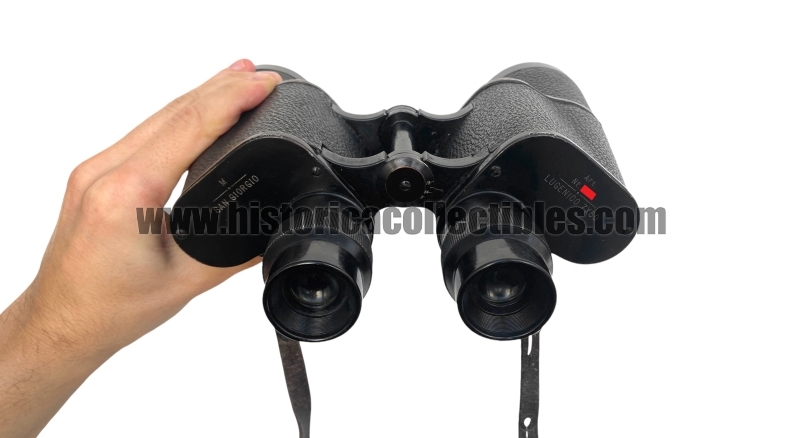 Binocolo 7x50 modello "Lugenico", prodotto dalla San Giorgio, nel 1940 circa, per essere destinato ai reparti di Artiglieria della Regia Marina. Riporta sulla piastra oculare sinistra, il marchio produttore "San Giorgio" con sovrastante una "M", marchio riferibile all'accettazione da parte della Regia Marina (l'assenza di "Genova-Sestri" sotto il marchio del produttore sta ad indicare che, con molta probabilità, questi binocoli sono stati realizzati durante il decentramento bellico, 1942-1943). Sulla piastra oculare destra, oltre al numero di assegnazione militare è presente la sigla "Art." la quale si riferisce all'assegnazione ai reparti di Artiglieria della Marina. Sottostante sono presenti modello "Lugenico" e ingrandimenti "7x50". Osservando attraverso l'oculare destro, è presente il reticolo utile al tiro di artiglieria.