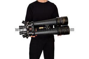 Binocolo con doppia torretta revolver a tre oculari, rispettivamente con 12, 20 e 40 ingrandimenti, dotato di obiettivi da 80 mm costituiti da un doppietto acromatico spaziato in aria.