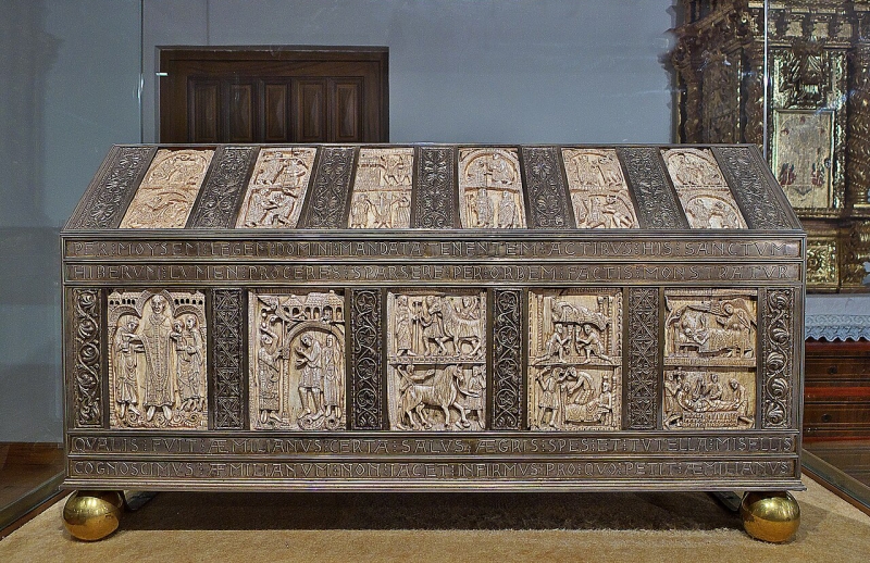 The original ivory plaque is kept at the Monastery of San Millán de Yuso, in San Millán de la Cogolla, in the Rioja region of Spain, and is set in the original reliquary ark, dated between 1060 and 1080, which houses the relics of the saint.