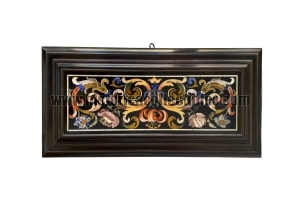 The Gallery of Works consisted of a series of studios or workshops for carpenters, cabinetmakers, wood carvers, goldsmiths, designers, founders, metalworkers, gilders of various kinds and the hard stone carvers (or commettitori) who carried out the intricate work to 'fit' semi-precious stones and marble (soft stones) compositions, as well as many other craftsmen from all over Europe. At the time of the creation of this object the workshops were under the artistic direction of the Florentine sculptor Giovanni Battista Foggini (1652-1725) who was appointed around 1685, although for several years he had been sculptor and court architect of the Medici. The main objects produced in the Gallery of Works were table tops with bases made mainly of ebony, rosewood and gilt bronze. There were also caskets, reliquaries and devotional objects of various kinds, various cabinets and cabinets and more rarely, trays and frames.