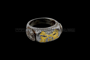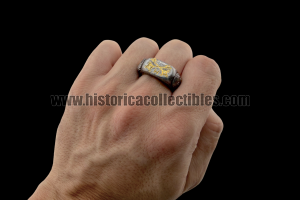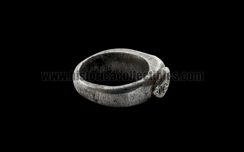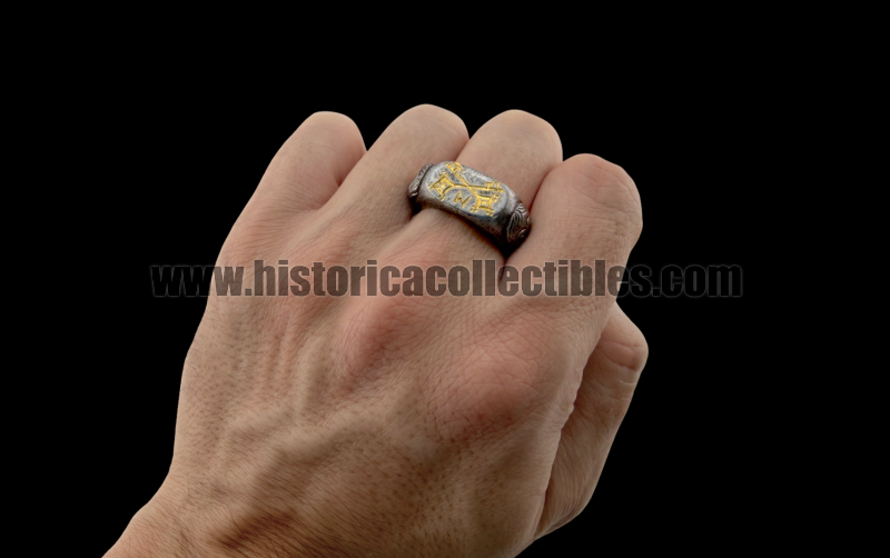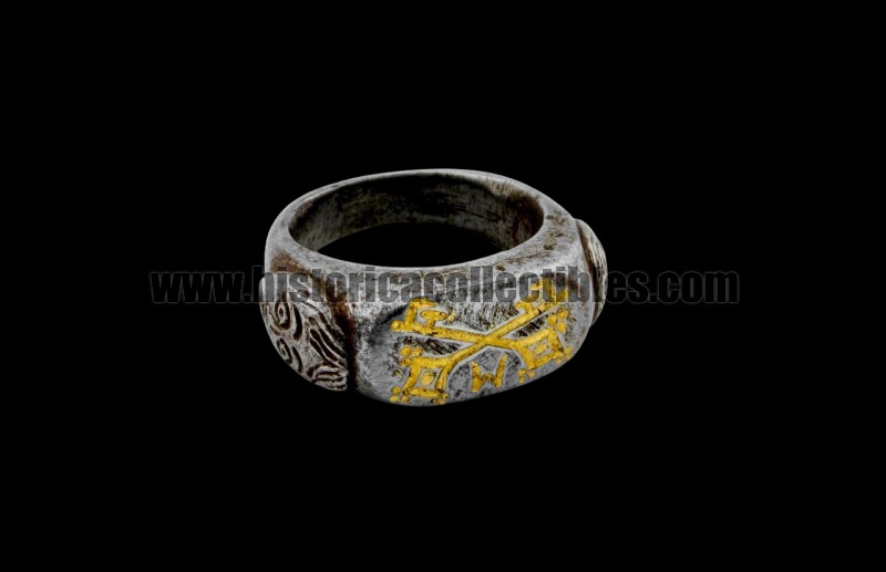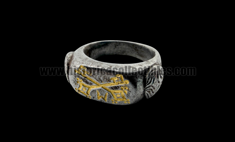 The setting, not set as a separate element but carved directly from the metal mass, features an iconographic field, engraved in low relief, consisting of two keys, attributable to the civic heraldry of the German city of Regensburg. Between the keys is the letter "M," which can be interpreted as an abbreviation for the title of Markgraf (Margrave), a noble dignity in the German feudal hierarchy with territorial governance functions and prerogatives almost autonomous from imperial authority.