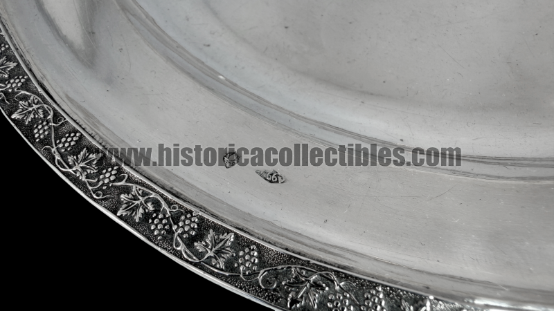The edge bears the punch stamp in force in Rome from 1815 to 1870 and the hallmark of the Roman silversmith Angelo Giannotti, who used it from 1824 to 1865.