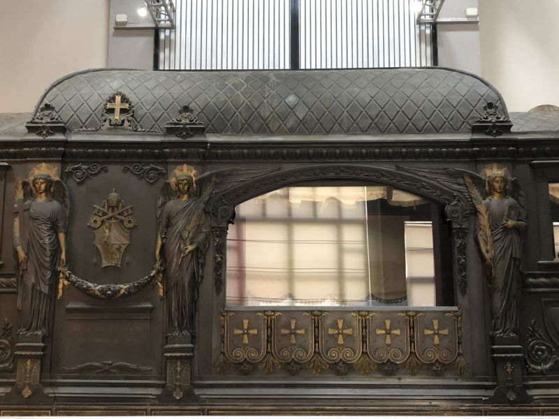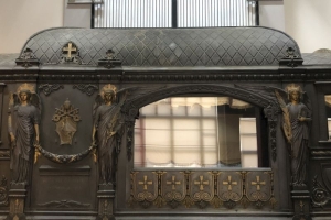 The edge is richly decorated in high relief with "vine shoots" and "grapes," which, as described in the Gospel of John 15:1, represent the bond between Jesus and his disciples and faithful, from whom they draw the lifeblood of salvation: "I am the vine, you are the branches."