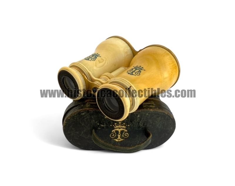 Antique Galilean binoculars, produced by “Fabre Opticien Turin & Florence” around 1875, which belonged to Tommaso di Savoia Genova, who was the consort of Isabella of Bavaria (granddaughter of King Ludwig I of Bavaria), Admiral, Lieutenant General of the Kingdom of Italy from 1915 to 1919 as well as member (office of H.R.H.) of the House of Savoy, brother of Margherita of Savoy, future Queen of Italy. The binoculars bear, like the case, the royal monogram or so-called numbers of "Tommaso di Savoia-Genova" and its structure appears to be completely made of ivory, just as all those threaded parts used for assembly and operation are made of ivory. The binoculars are in excellent aesthetic and functional condition: the lenses are very clear and the view is excellent.