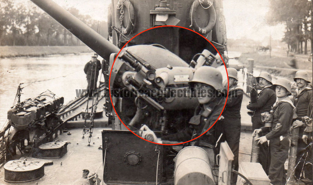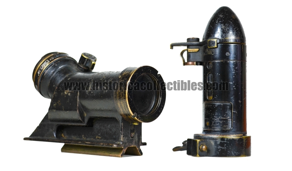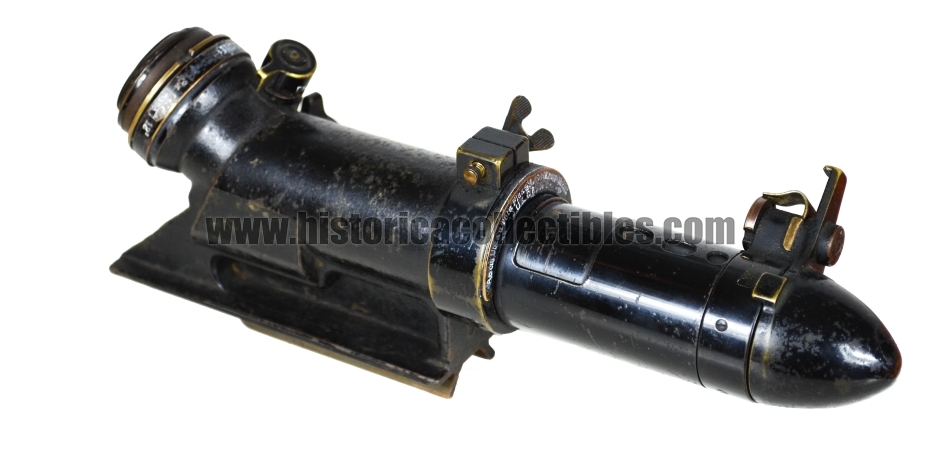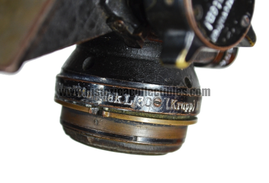 U-Boot Zielfernrohr or pointing telescope, produced by Carl Zeiss in about 1915, and in use on the Cannon called Ubts.u. TBTS. Flak L / 30 8.8 cm Krupp, 264 cm long, installed on board of the U-Boot class U-19 of the Kaiserliche Marine (German Imperial Marina), used during World War I. The U-Boot Class U-19 is to be remembered for the U-20, famous for sinking the largest number of ships, among which the English Transatlantic "RMS Lusitania" in 1915.