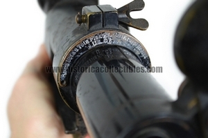 What makes exceptionally rare this U-boot Zielfernrohr is the presence of a small lever on the eyepiece, which reports "Dunkel" and "Hell" (Dark and Light) to indicate the presence of a small auto lightening device, Made with "Radio or Radium" particles, suitable for lighting the reticle in case of poor visibility.