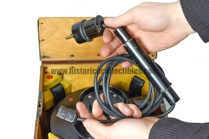 The body is completely made of bakelite and aluminum and has an illuminated glass dial, through a special illuminating cable, on which is shown the celestial vault.