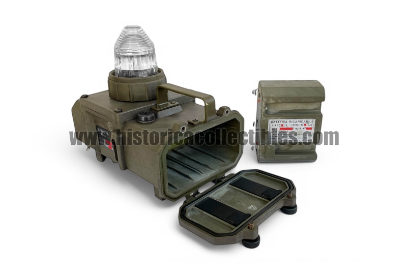 This lamp, which by means of a special selector works with a "fixed light" or "flashing", can be easily transported thanks to a special handle or positioned in a fixed position thanks to the housings on its sides which certainly coincided with those present on the landing craft etc. etc. supplied to the Group.