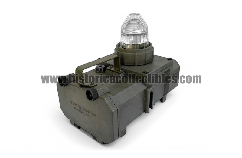 Portable battery-powered military lamp, produced by Officine Panerai - Florence around 1970, and probably intended for the "Teseo Tesei" Command of Divers and Raiders which includes the "Gruppo Operativo Subacquei - Underwater Operations Group" (G.O.S.) and the "Gruppo Operativo Incursori - Raider Operational Group" (G.O.I) units of the Italian special forces of the Italian Navy.