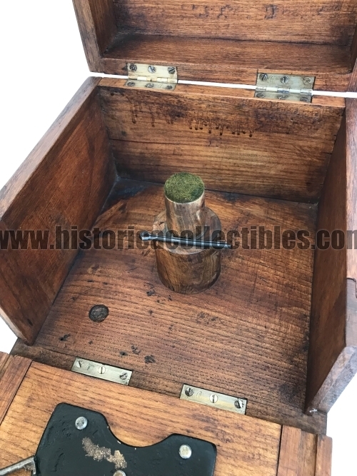 Realizzata in massiccio bronzo marino, è conservata nella sua originale cassetta, rarissimo esemplare così completo.