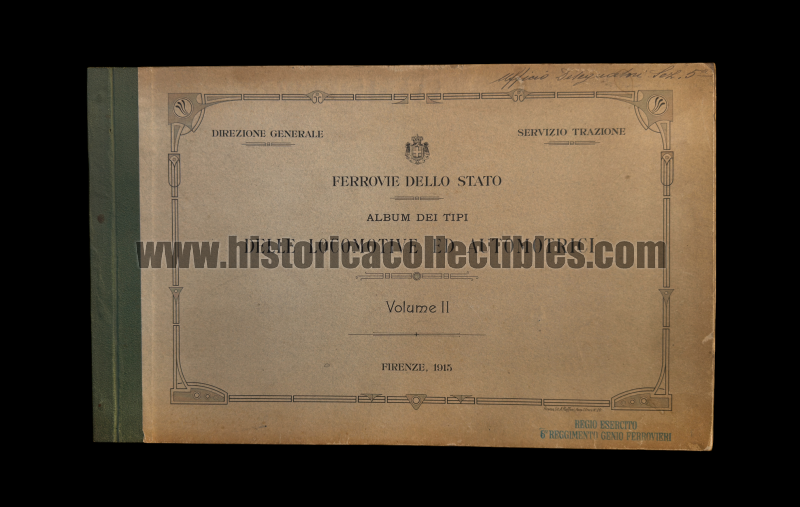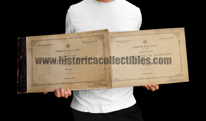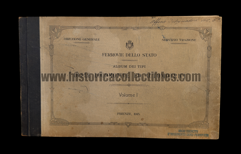 Si tratta della prima edizione del 1915, edita dalla "Direzione Generale" e "Servizio Trazione" delle Ferrovie dello Stato, relativa 2 grandi Volumi Nomenclatori "Locomotive e Automotrici", in dotazione al 6° Reggimento Ferrovieri del Regio Esercito.