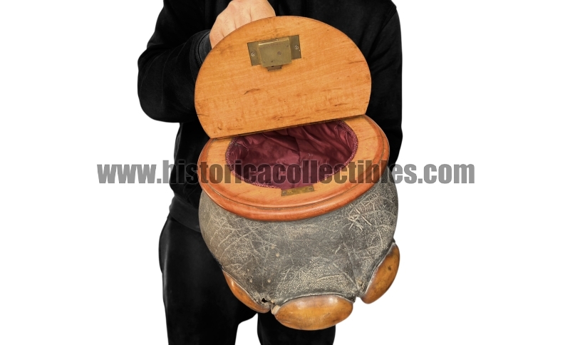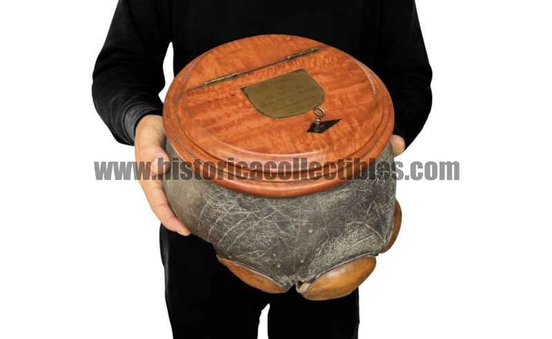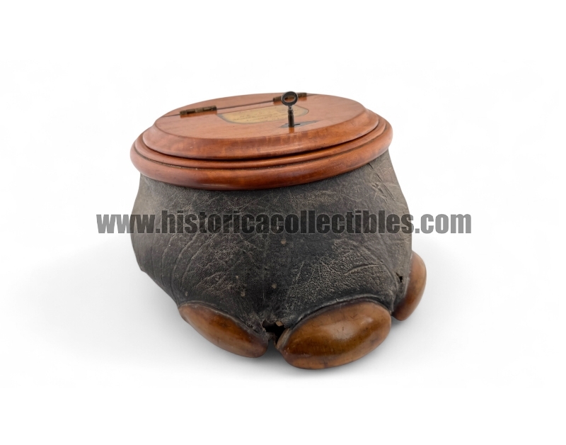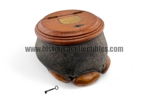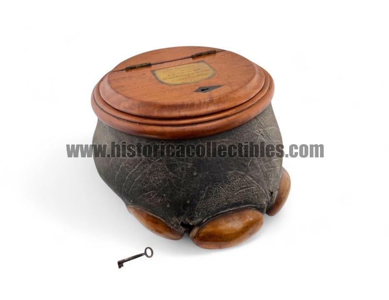 Sul coperchio del bauletto infatti, vi è incastonata una targa dalla quale si evince che l'Oberstleutnant Lothar Von Trotha, ne fece dono a ricordo, il 15 giugno 1895 dalla città di Tanga dove aveva sede un ufficio distrettuale dell'Africa Orientale Tedesca, ad una figura probabilmente femminile, la quale si trovava verosimilmente in Germania. Ciò lo si deduce dal fatto che questo bauletto, nei dettami estetici e funzionali tra l'altro di un vero e proprio portagioie, considera al suo interno un velluto color porpora. A suffragio dell'ipotesi che questo bauletto sia stato ricavato da una zampa di uno degli elefanti abbattuti da Lothar von Trotha, vi è il fatto che la Tanzania vantava