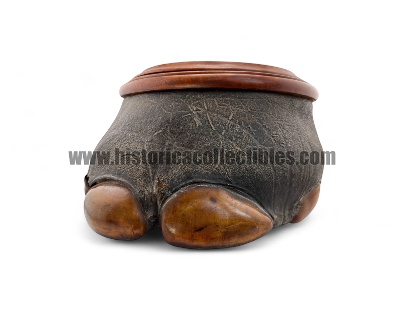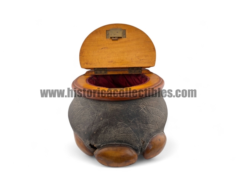 Bauletto dal tipico stile Liberty o art noveau ricavato da una zampa di Elefante, donato dall'Oberstleutnant Lothar Von Trotha, Comandante delle forze di protezione e Vicegovernatore dell'Africa Orientale Tedesca, nel 1895.