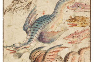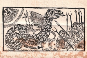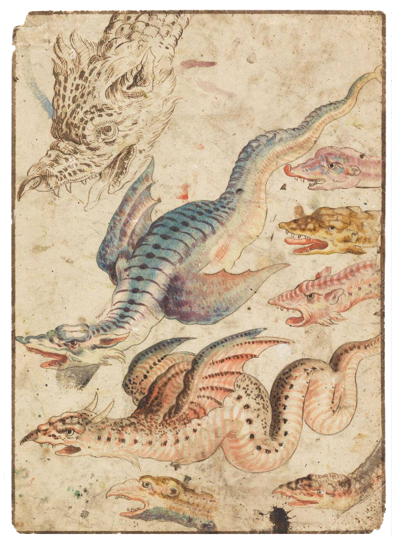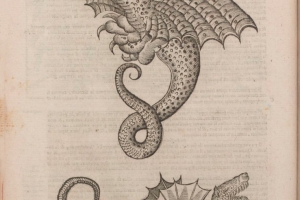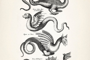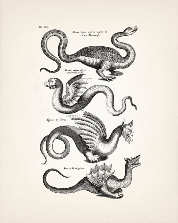DRAGO ALATO, anticamente definito "Draco Alatus Apes ex Greuino Aldro", come risulta da una tavola incisa nel libro: "Tablatura di Jonston Jan, Merian Matthäus, Theatrum universale omnium animalium ecc., Heilbronn, Eckerbrecht, 1755" dalla prima edizione "Merian, Matthäus (1593-1650) Vista di draghi leggendari con code di serpente".
