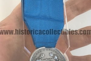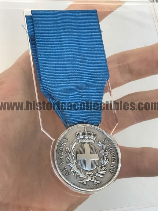 Medaglia d'Argento al Valore Militare, Regno di Sardegna, punzonata "FG", (iniziali di Ferraris Giuseppe, capo incisore della zecca dal 1833), coniata per la Battaglia d'Ancona, avvenuta dal 23 al 29 settembre 1860, nella quale si videro agli opposti l'Esercito Piemontese, comandato dal Generale Fanti e Cialdini, e l'Esercito Pontificio comandato dal Generale De La Moriciere.