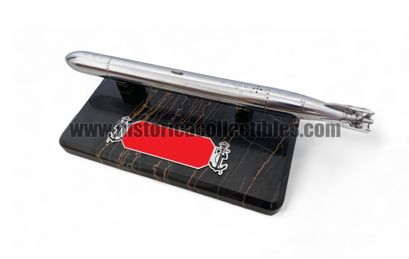 Questo modello di Siluro, in acciaio nichelato, fu realizzato rispettando con estrema fedeltà tutti i dettagli presenti nell'originale. Ciò è stato possibile solo grazie alla diretta e minuziosa osservanza tecnica, riservata esclusivamente alle eccelse maestranze aziendali, le quali erano le uniche a poter attingere queste informazioni direttamente dal siluro originale. Questo trova conferma nella magnifica targa posta sulla sua base di sostegno in marmo, nella quale è descritto che questo modello fu donato proprio dai Dirigenti del Silurificio Whitehead di Fiume, indice del fatto che li fu anche realizzato, al Principe Junio Valerio Borghese, in concomitanta della sua nomina a nuovo Comandante della X Flottiglia Mas avvenuta proprio il 1 maggio del 1943.