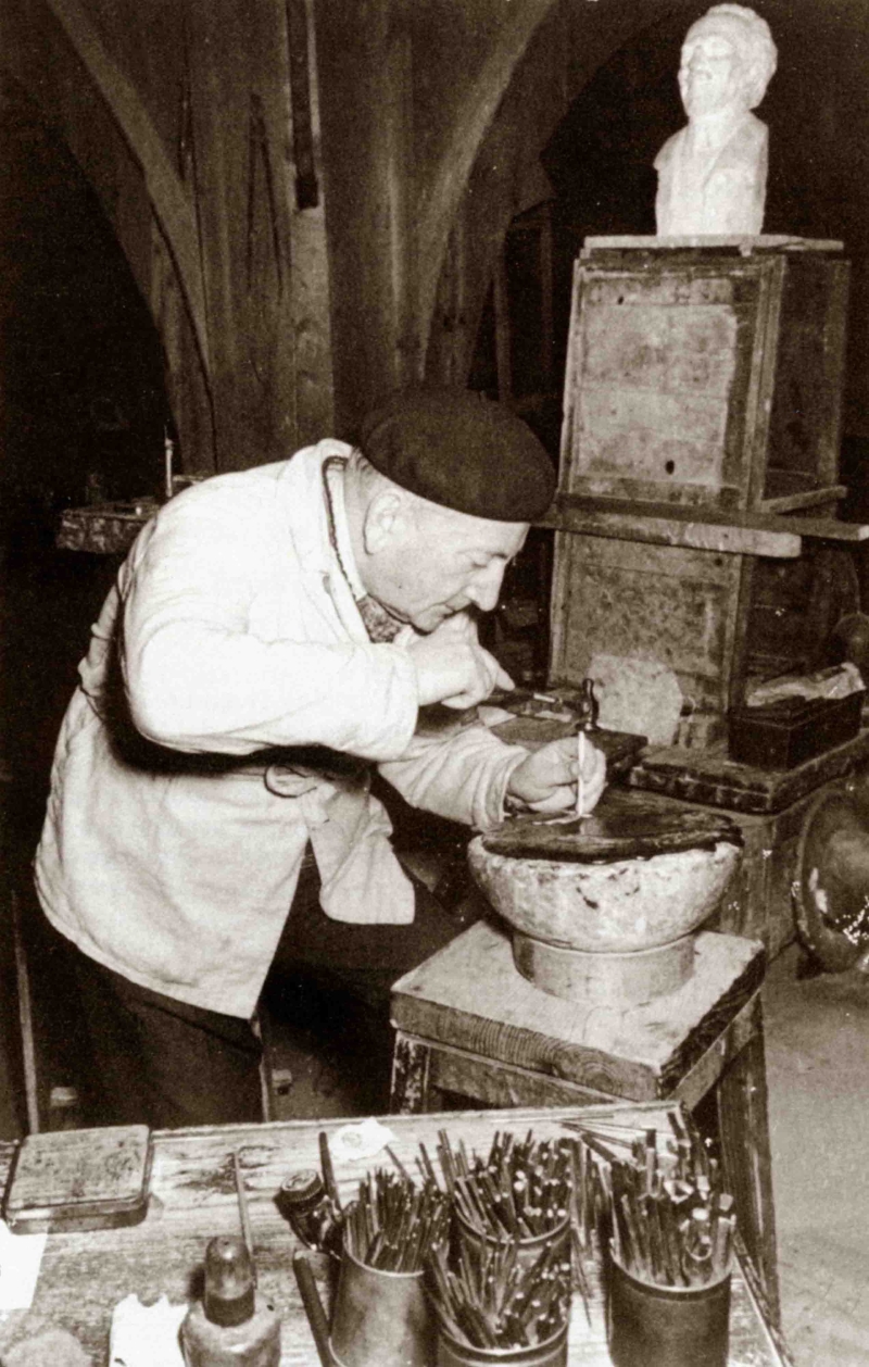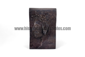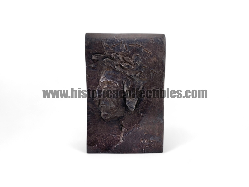 Opera unica di scultura in bassorilievo, ricavata da un unico blocco di ferro di forma rettangolare, scolpito, limato ed inciso completamente a mano. La scultura, raffigurante il sommo poeta Dante Alighieri nel suo più classico profilo conosciuto, fu realizzata e firmata da Renato Brozzi, nel 1920, scultore, incisore e orafo italiano, per Gabriele d'Annunzio. I lavori del Brozzi infatti, richiamarono l'attenzione di Gabriele D'Annunzio, il quale, proprio dal 1920, anno cui è datata questa scultura, lo volle come suo scultore e orafo personale.