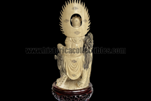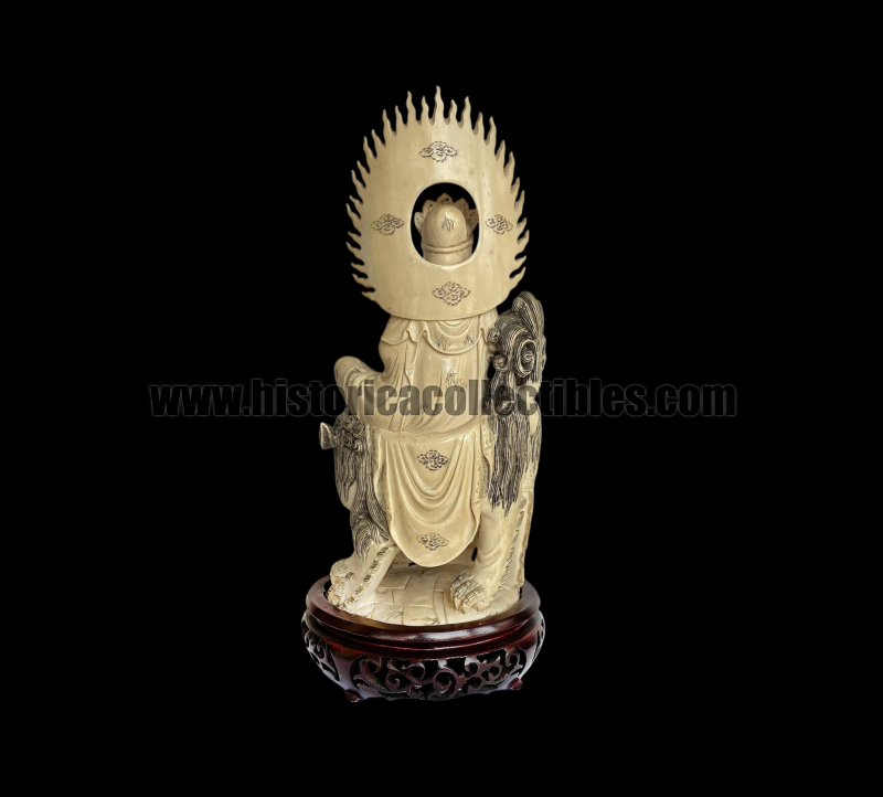 La scultura, ricavata da un pregiatissimo avorio proveniente da "Elephas Maximus Indicus" (elefante asiatico) è magistralmente scolpita e incisa, e non presenta mancanze o rotture nemmeno nei più piccoli particolari.